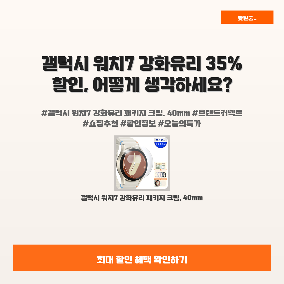 🛍️ 이 포스팅은 네이버 쇼핑 커넥트 활동의 일환으로,판매 발생 시 수수료를 제공받습니다.오늘 소개할 제품은 단연코,갤럭시 워치7 강화유리 패키지 크림, 40mm!최신 갤럭시 워치를 구매하셨나요? 혹은 이미 사용하고 계신가요?그렇다면 여러분의 워치를 안전하게 지켜줄 "갤럭시 워치7 강화유리 패키지 크림, 40mm"에 대해 알아보세요!스마트워치의 화면이 쉽게 흠집나거나 깨질까 걱정이신가요? 걱정을 덜어줄 완벽한 해결책이 여기 있습니다!이번 35% 할인 행사로 정가 349,000원에서 단 226,000원에 만나보실 수 있답니다!이제는 강력한 보호와 가성비를 함께 챙길 수 있는 기회가 왔어요!실제 사용자들의 극찬과 후기를 보면, 그 인기를 실감하실 수 있을 거예요. 놓치지 마세요!※ 이거 진짜 제가 직접 써..
